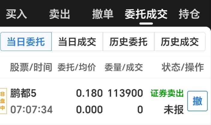 $鹏都5(SZ400256)$ 开盘前下单,看看能不能成交?