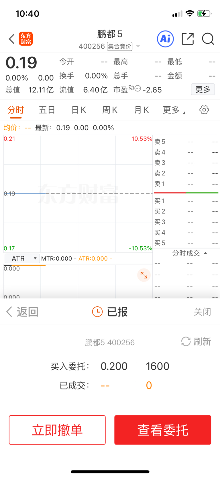 $鹏都5(SZ400256)$ 019买得到?要卖的上周都卖了。不多,起码不是空头。