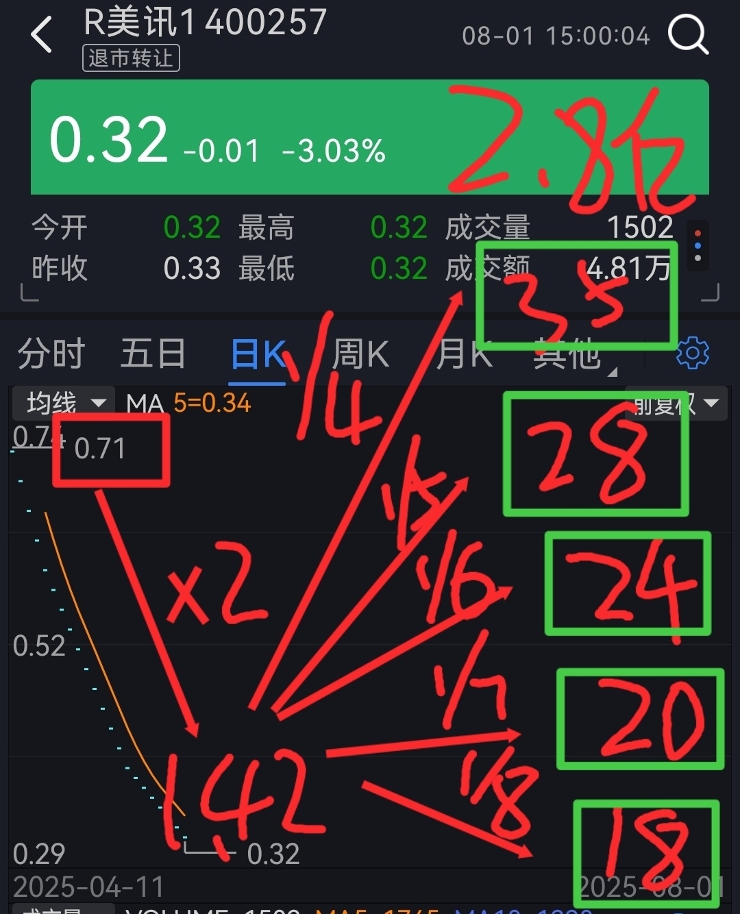 $R美讯1(SZ400257)$ 跌到32的时候,我画的未来的图,现在一一应验了