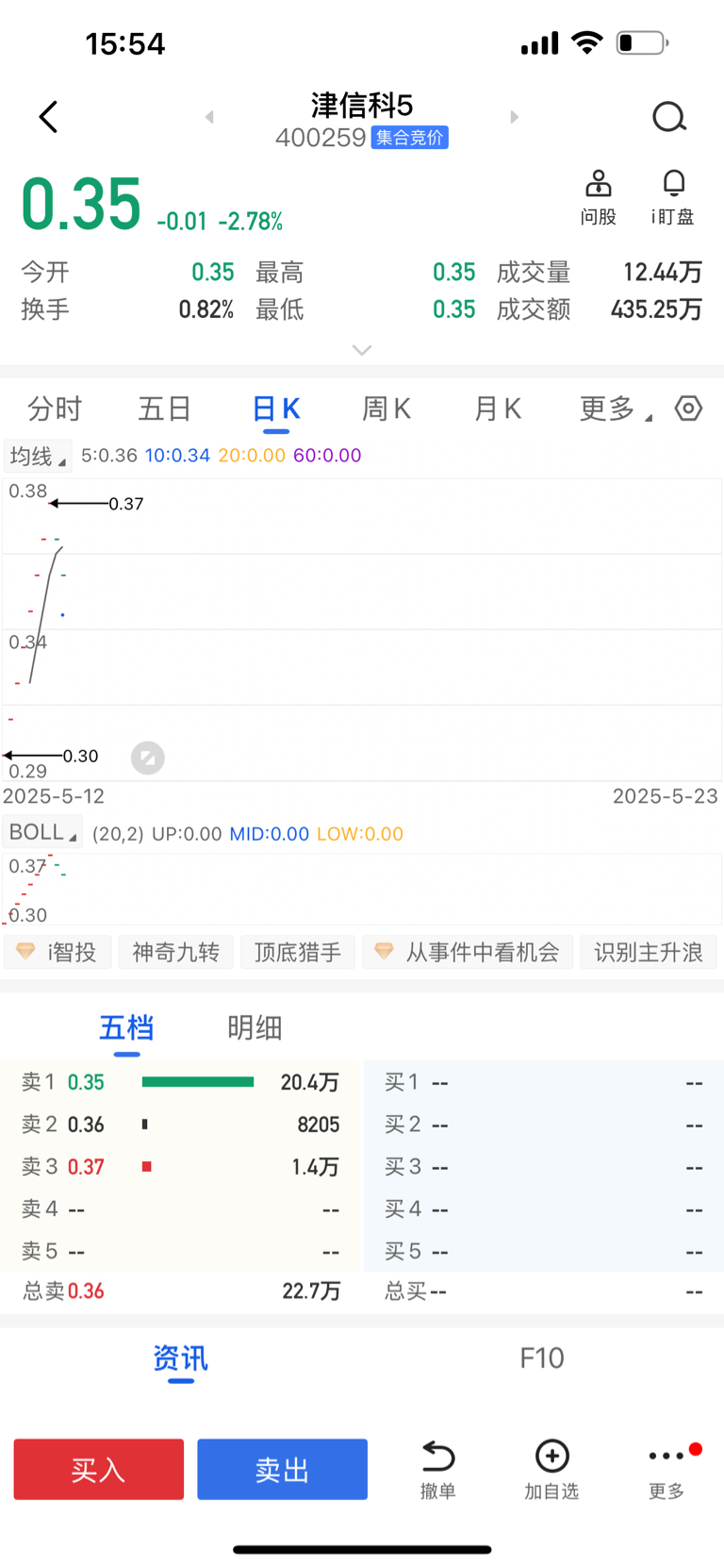 每天记录一下津信科5的成长历程(说明一下,这是这支股票每天收盘前的情况和当天的成