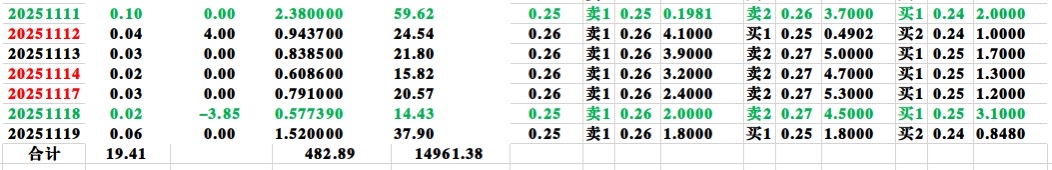 20251119收盘后统计的津信科5历史数据(含当天)。希望对朋友们分析有帮助。