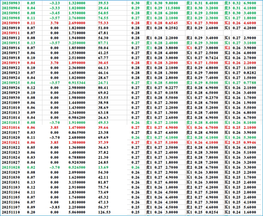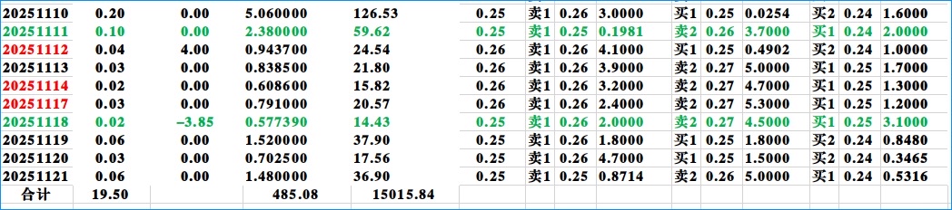 20251121收盘后统计的津信科5历史数据(含当天)。希望对朋友们分析有帮助。