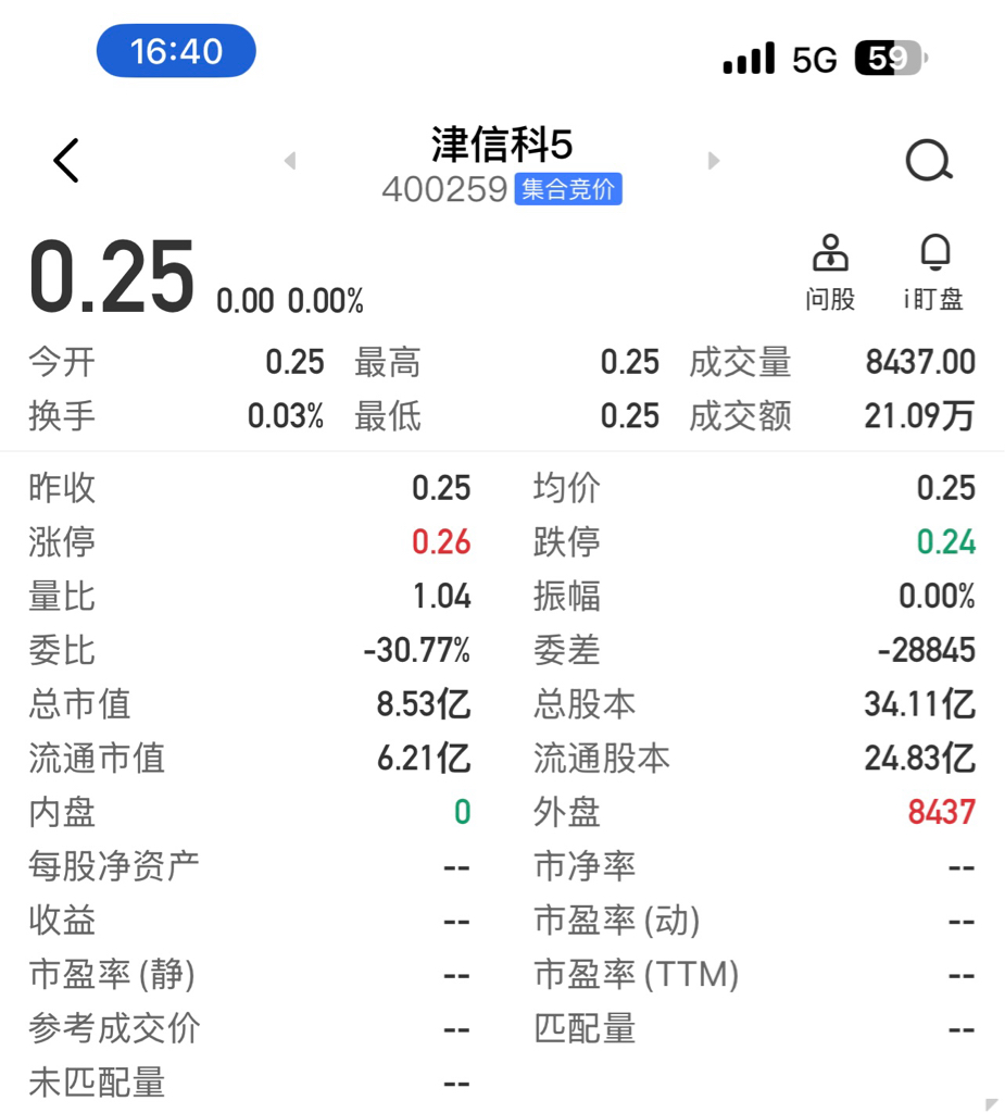 $津信科5(SZ400259)$ 20251223收盘后统计的津信科5历史数据(含当天)。希望对朋友们分析有帮助。津信科5和东方3是我唯一持有的两支老三板股票,不买也不卖,长期持有。带着津信科5和东方3一直到2030!祝股友们股市长红!