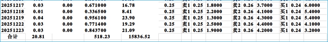 20251223收盘后统计的津信科5历史数据(含当天)。希望对朋友们分析有帮助。