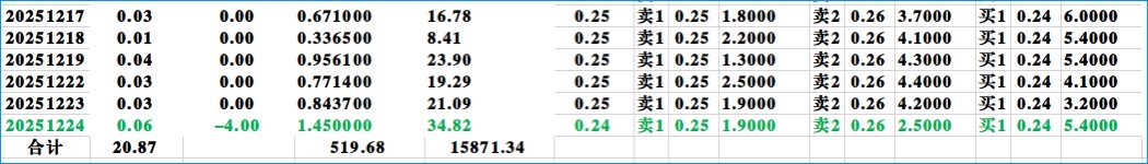 20251224收盘后统计的津信科5历史数据(含当天)。希望对朋友们分析有帮助。