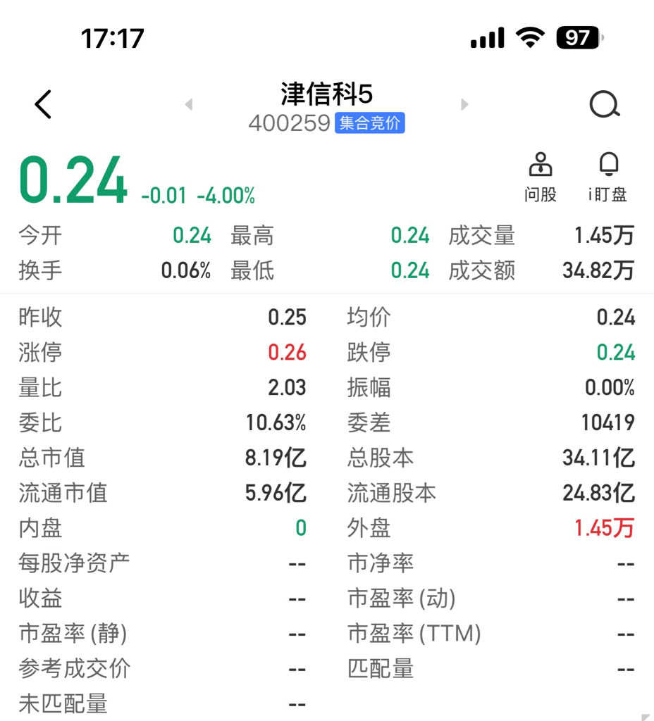 $津信科5(SZ400259)$ 20251224收盘后统计的津信科5历史数据(含当天)。希望对朋友们分析有帮助。津信科5和东方3是我唯一持有的两支老三板股票,不买也不卖,长期持有。带着津信科5和东方3一直到2030!祝股友们股市长红!