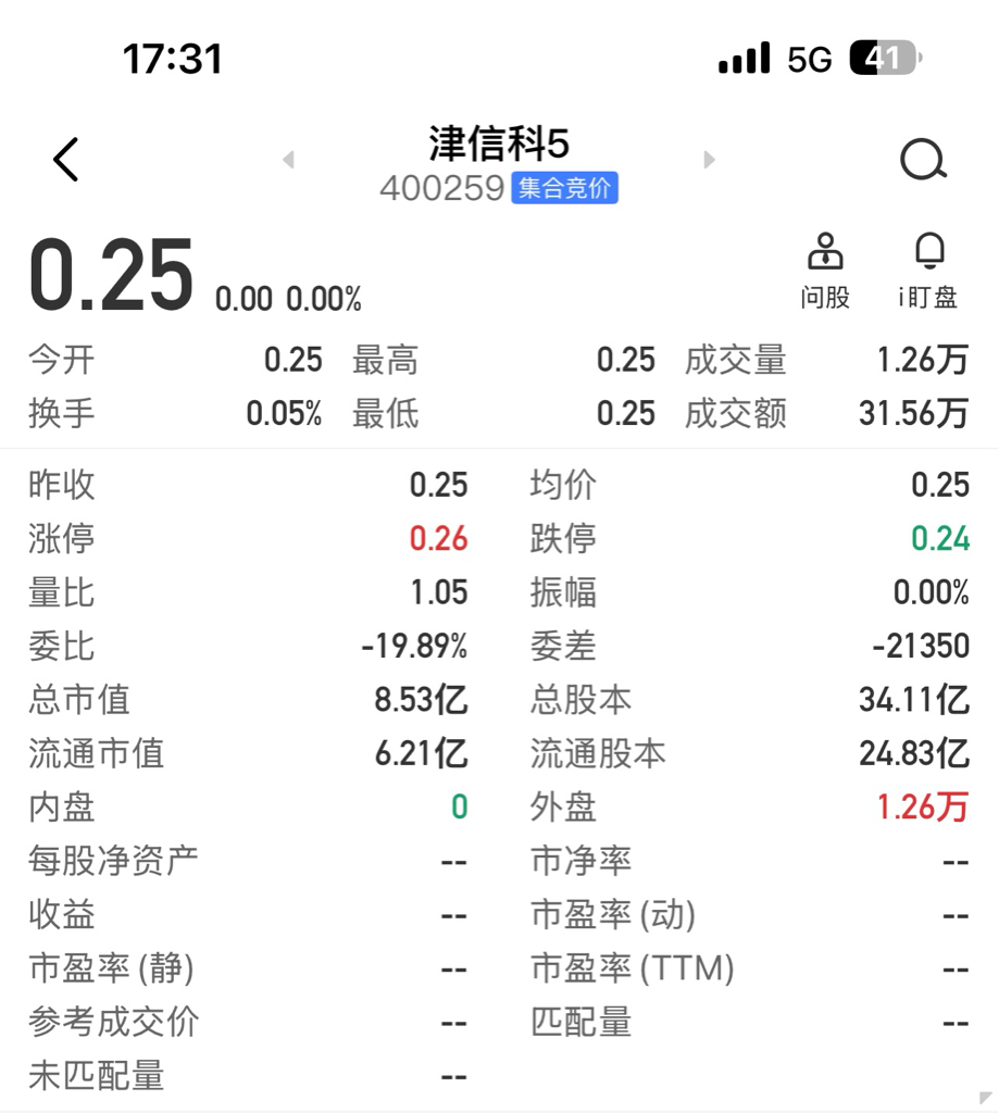 $津信科5(SZ400259)$ 津信科5的第174个交易日。20260121收盘后统计的津信科5历史数据(含当天)。希望对朋友们分析有帮助。津信科5和东方3是我唯一持有的两支老三板股票,不买也不卖,长期持有。带着津信科5和东方3一直到2030!祝股友们手中股票长红赚大钱!