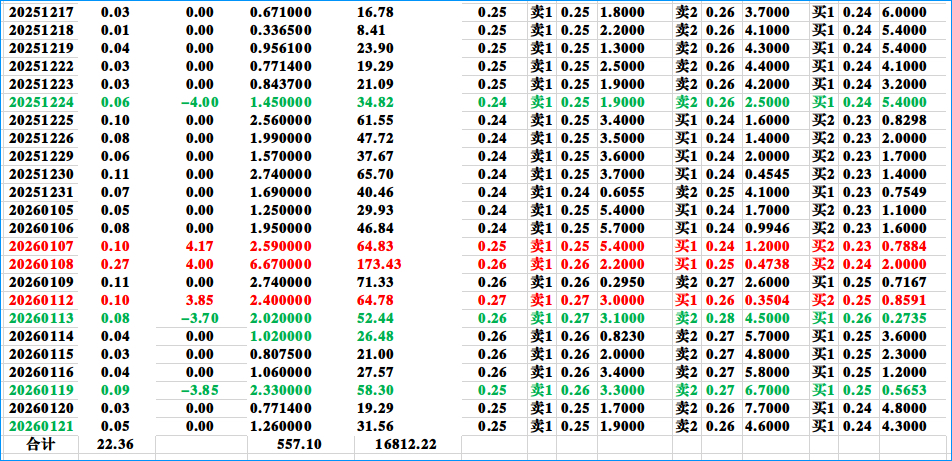 津信科5的第174个交易日。20260121收盘后统计的津信科5历史数据(含当天