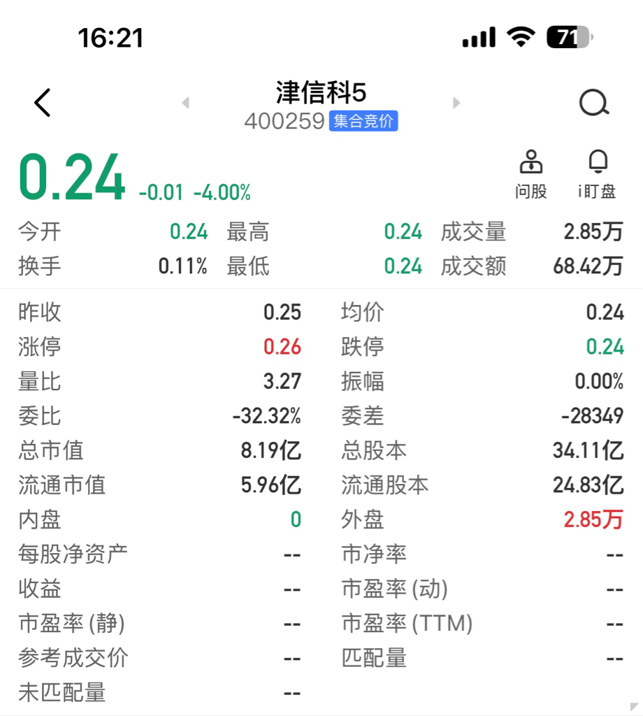 $津信科5(SZ400259)$ 津信科5的第182个交易日。20260202收盘后统计的津信科5历史数据(含当天)。希望对朋友们分析有帮助。津信科5和东方3是我唯一持有的两支老三板股票,不买也不卖,长期持有。带着津信科5和东方3一直到2030!祝股友们手中股票长红赚大钱!