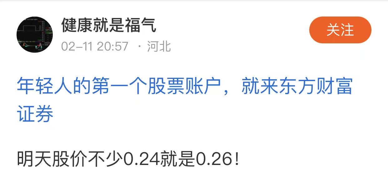 温馨提示: 1.根据《证券法》规定,禁止编造、传播虚假信息或者误导性信息,扰乱证券市场;2.用户在本社区发表的所有资料、言论等仅代表个人观点,与本网站立场无关,不对您构成任何投资建议。用户应基于自己的独立判断,自行决定证券投资并承担相应风险。《东方财富社区管理规定》