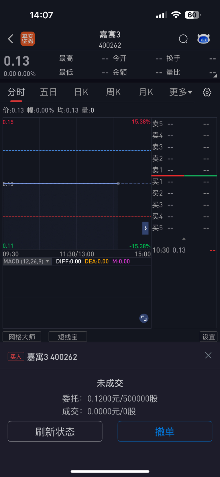今天要撤单的哈,从0.12起,每跌一分全部4500-5000手堵门。懂得都懂哈。