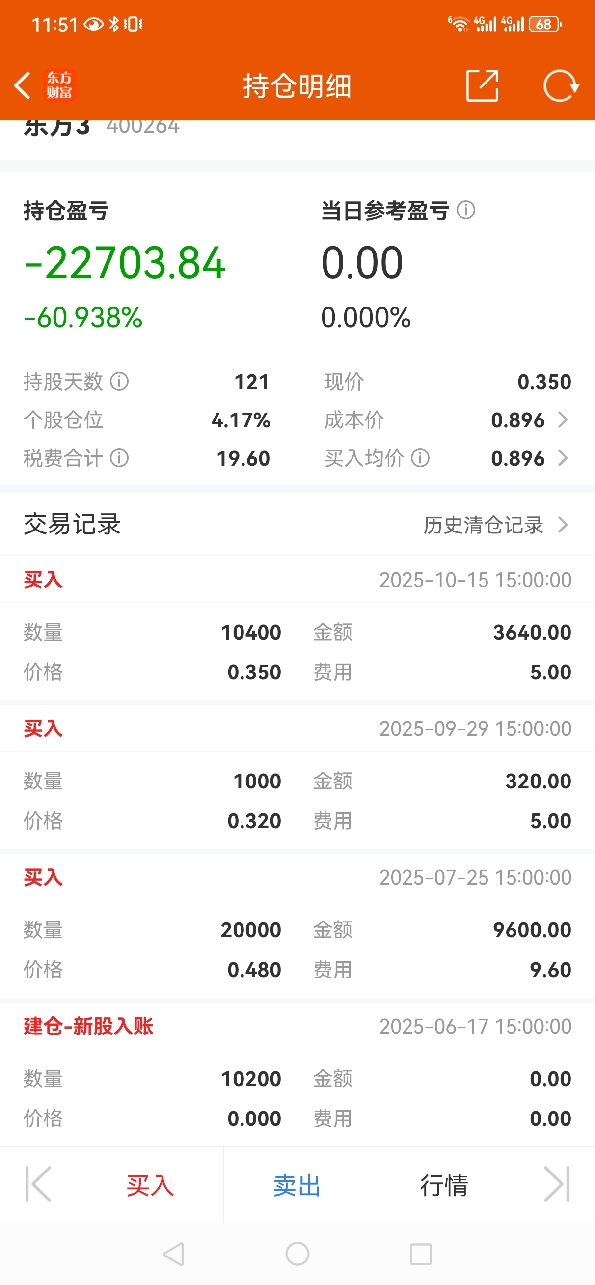 这就是我的持仓,准备买到五十万股就不动了锁仓,每个一三五都挂买一点,堵它能东方再