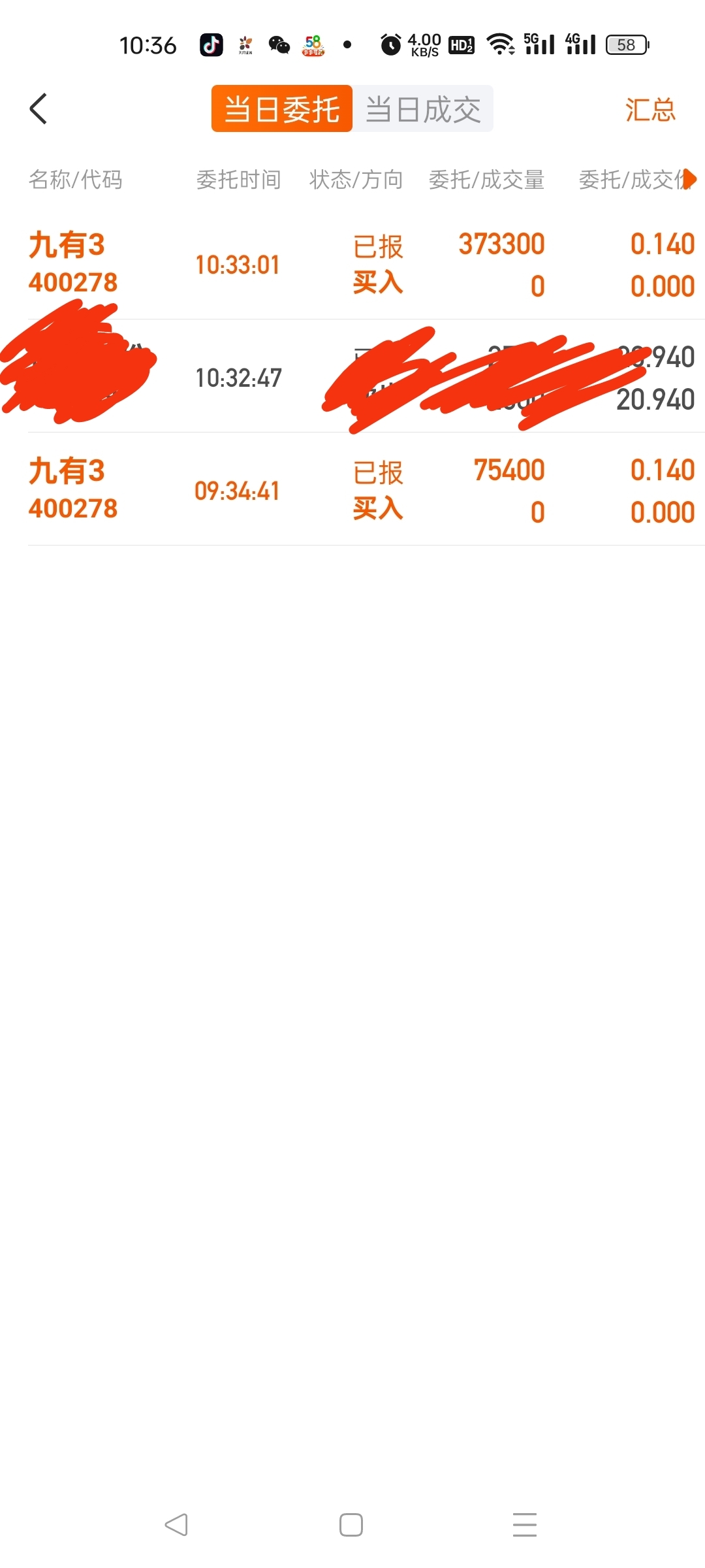 东方又是小收5800元,九有已挂40多万股凑够100万股,东方挂了也白挂放弃,九