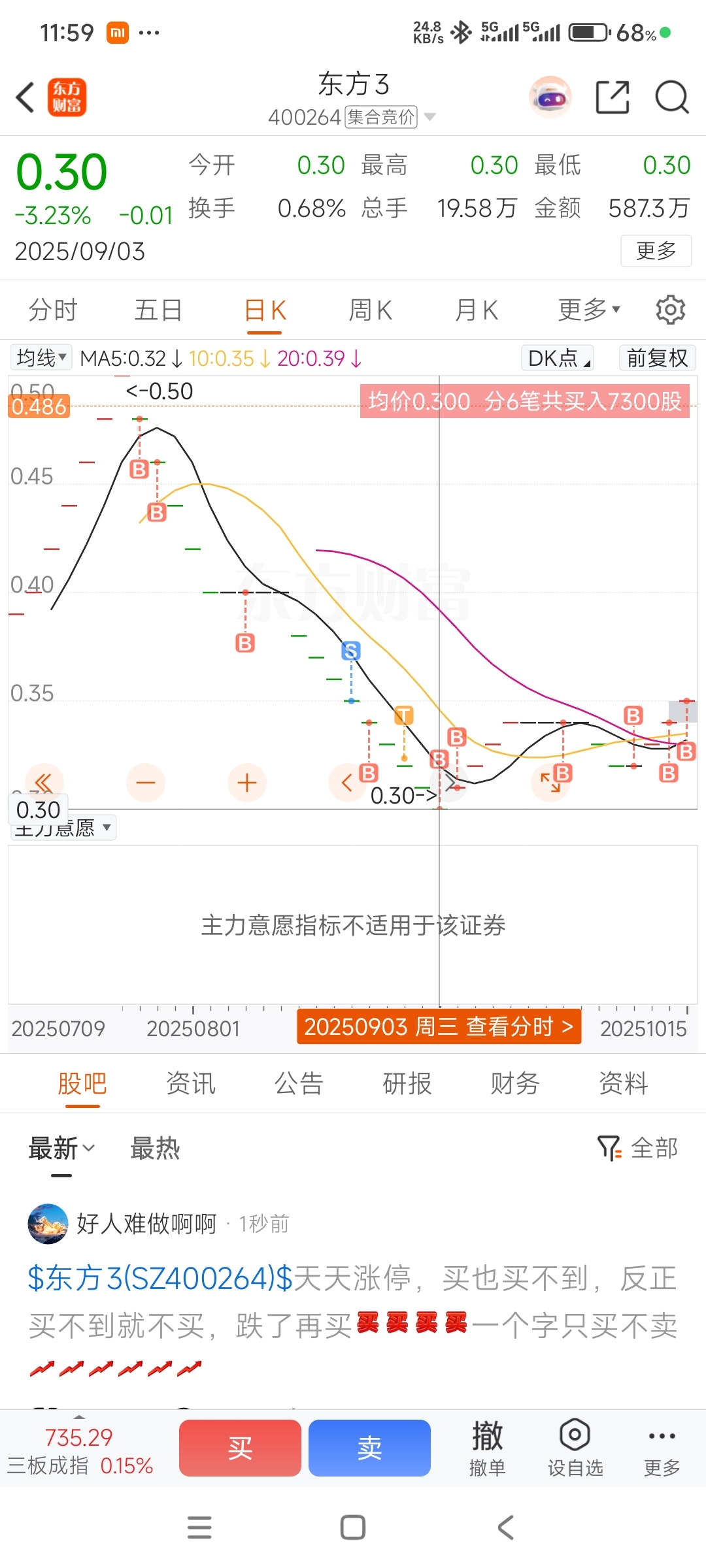 $东方3(SZ400264)$ 一直在买入中。目标10万股。