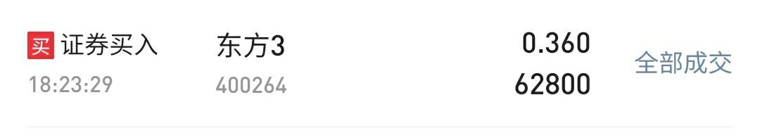 $东方3(SZ400264)$ 买进了