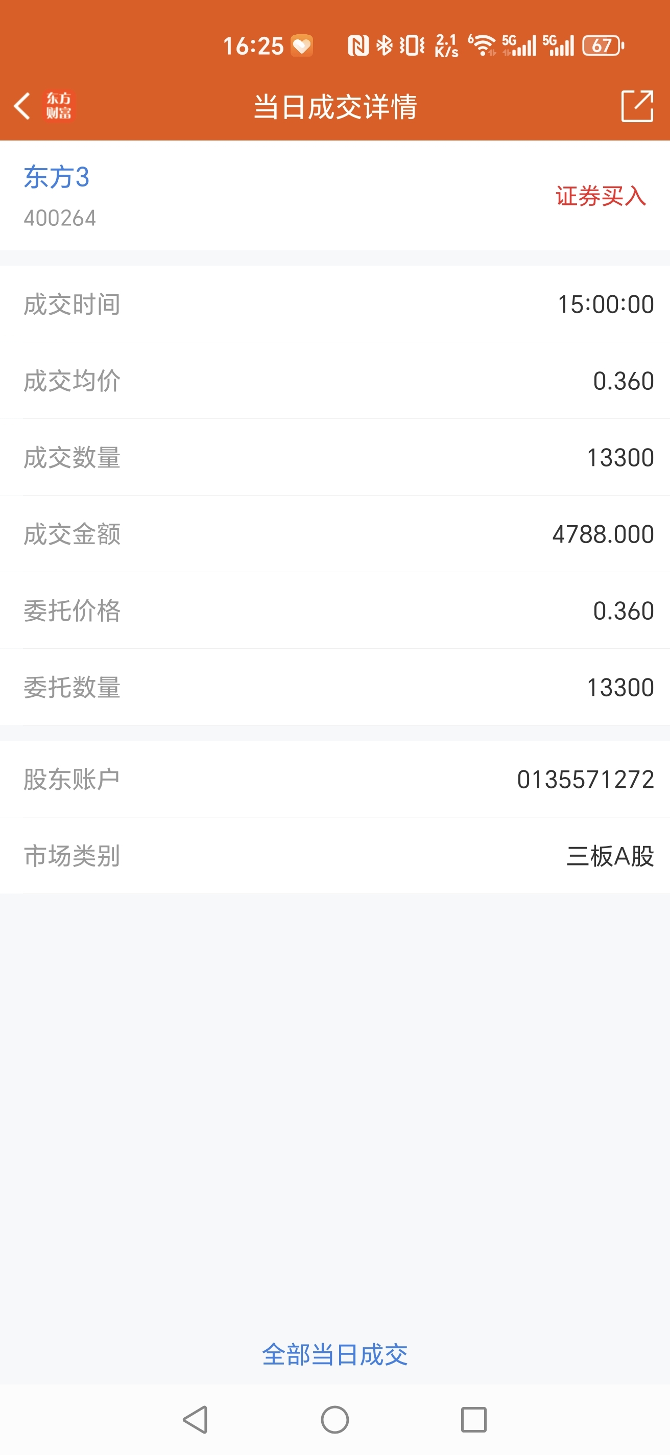 $东方3(SZ400264)$ 一笔成交,感觉不太好有大户在跑路