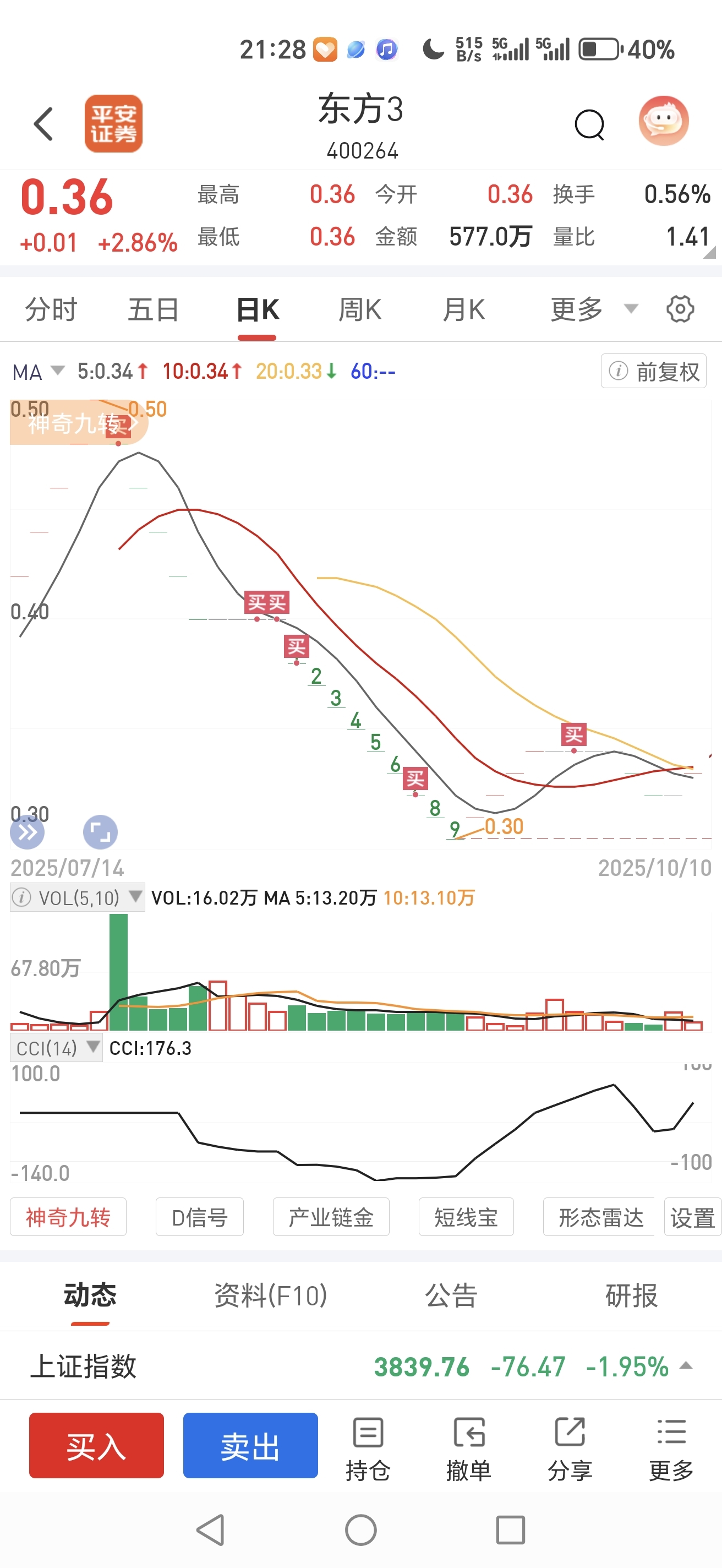 $东方3(SZ400264)$ 买少了,才买56万元的,