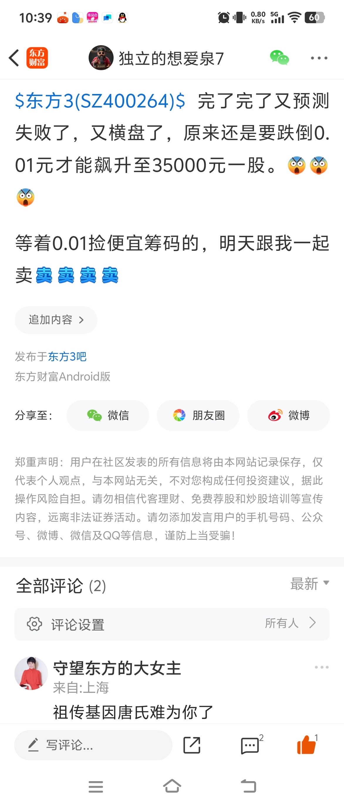 $东方3(SZ400264)$ 守望东方的大亩苟,好赖话听不出来,脑子捐了吧。