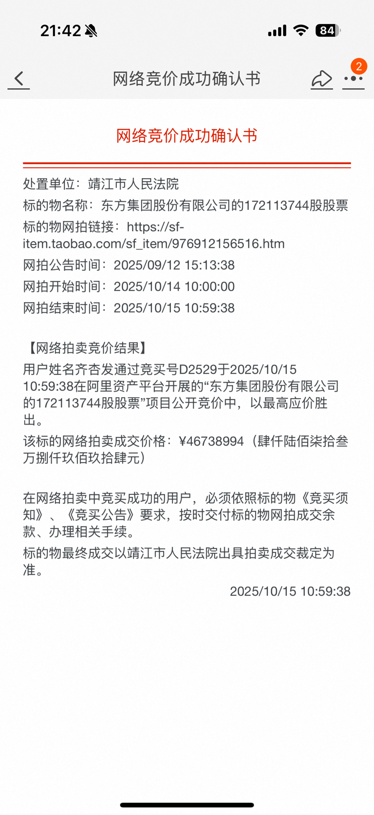 $东方3(SZ400264)$ 拍卖成立价每股0.27元,市场上每股0.36元。