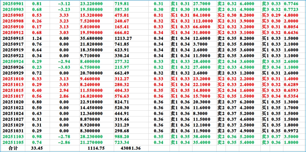 $东方3(SZ400264)$ 20251105收盘后统计的东方3历史数据(含当天)。希望对朋友们分析有帮助。津信科5和东方3是我唯一持有的两支老三板股票,不买也不卖,长期持有。带着津信科5和东方3一直到2030!祝股友们股市长红!