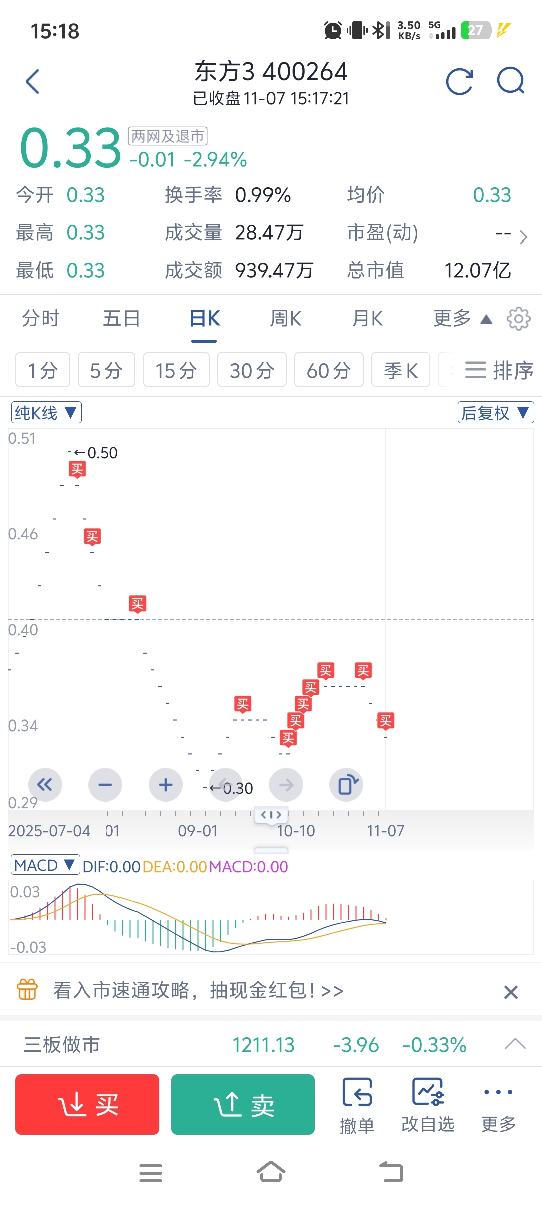 $东方3(SZ400264)$ 只买不卖,静待花开!!
