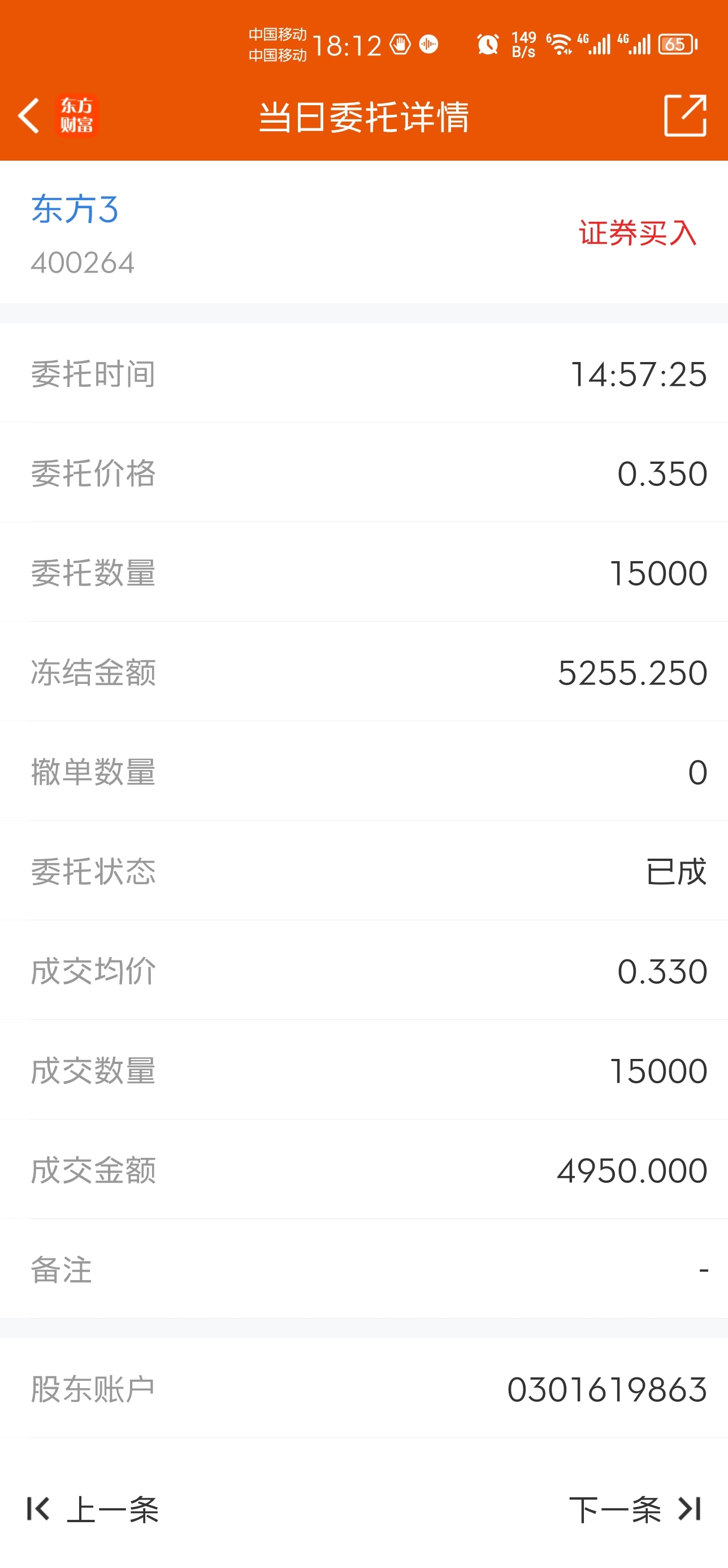 $东方3(SZ400264)$ 今天又补了15000股,主板赚钱东方花