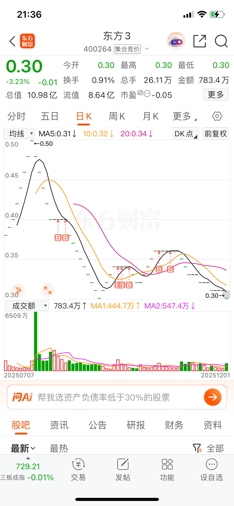 $东方3(SZ400264)$ 8万股亏了我18个点了,这走势不敢补仓,真怕0.2都守不住