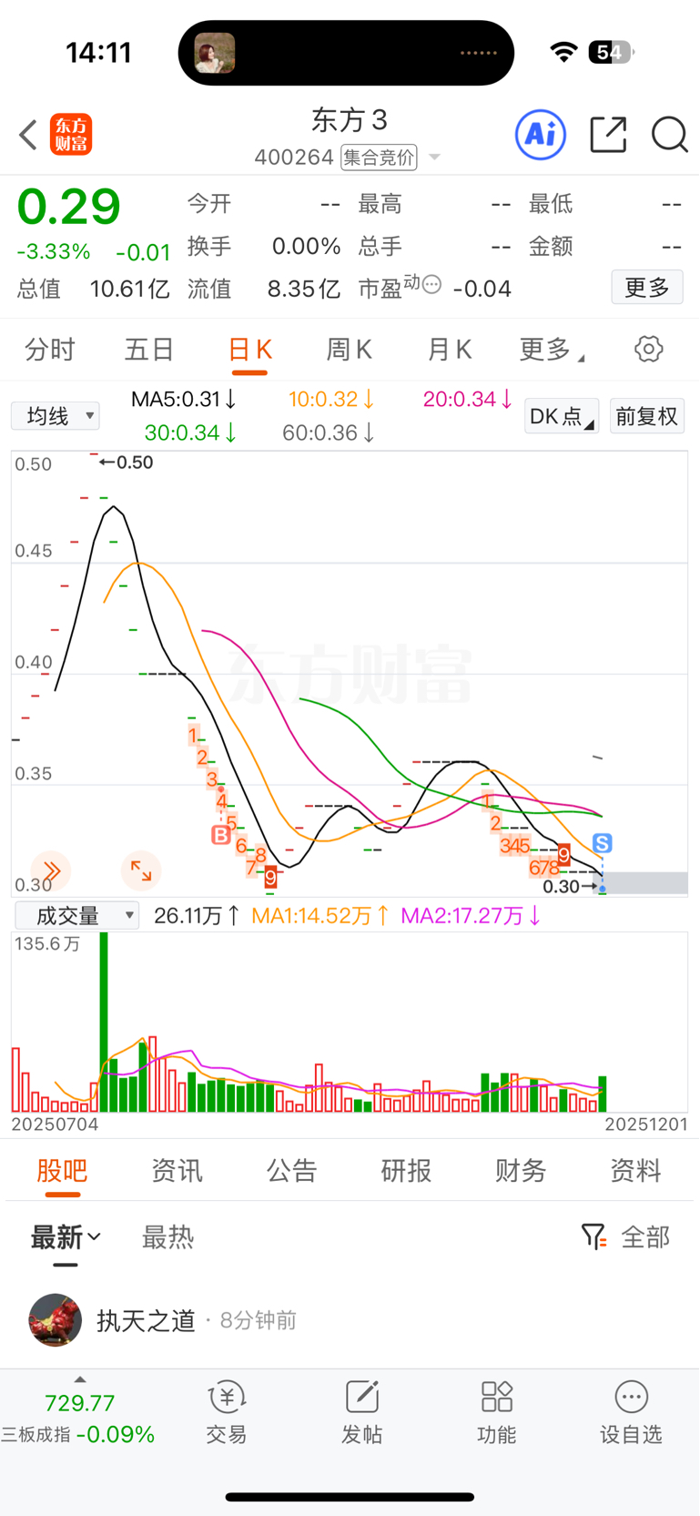 $东方3(SZ400264)$ 格局到这里了 就不能陪你了 买了12手股 清算破产一毛钱再来
