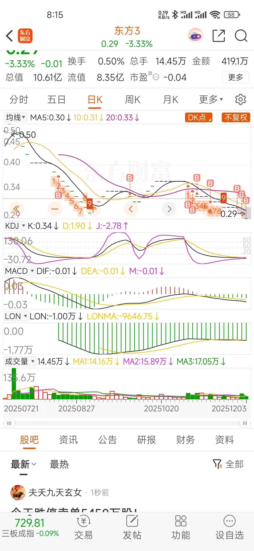 $东方3(SZ400264)$ 加油,预计还会跌0.26元开始止跌,会持续进货,最终完成锁仓,有就有,没了就没了!