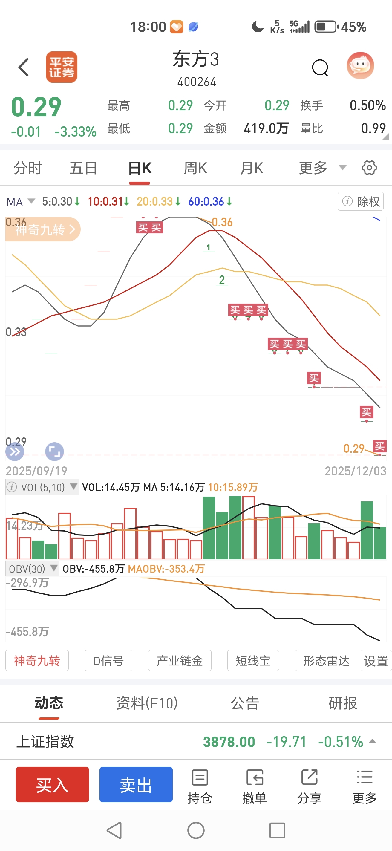 $东方3(SZ400264)$ 还没有买够,按计划,下跌加仓,加仓直至股票价格一分为止,要是归零,愿赌服输。