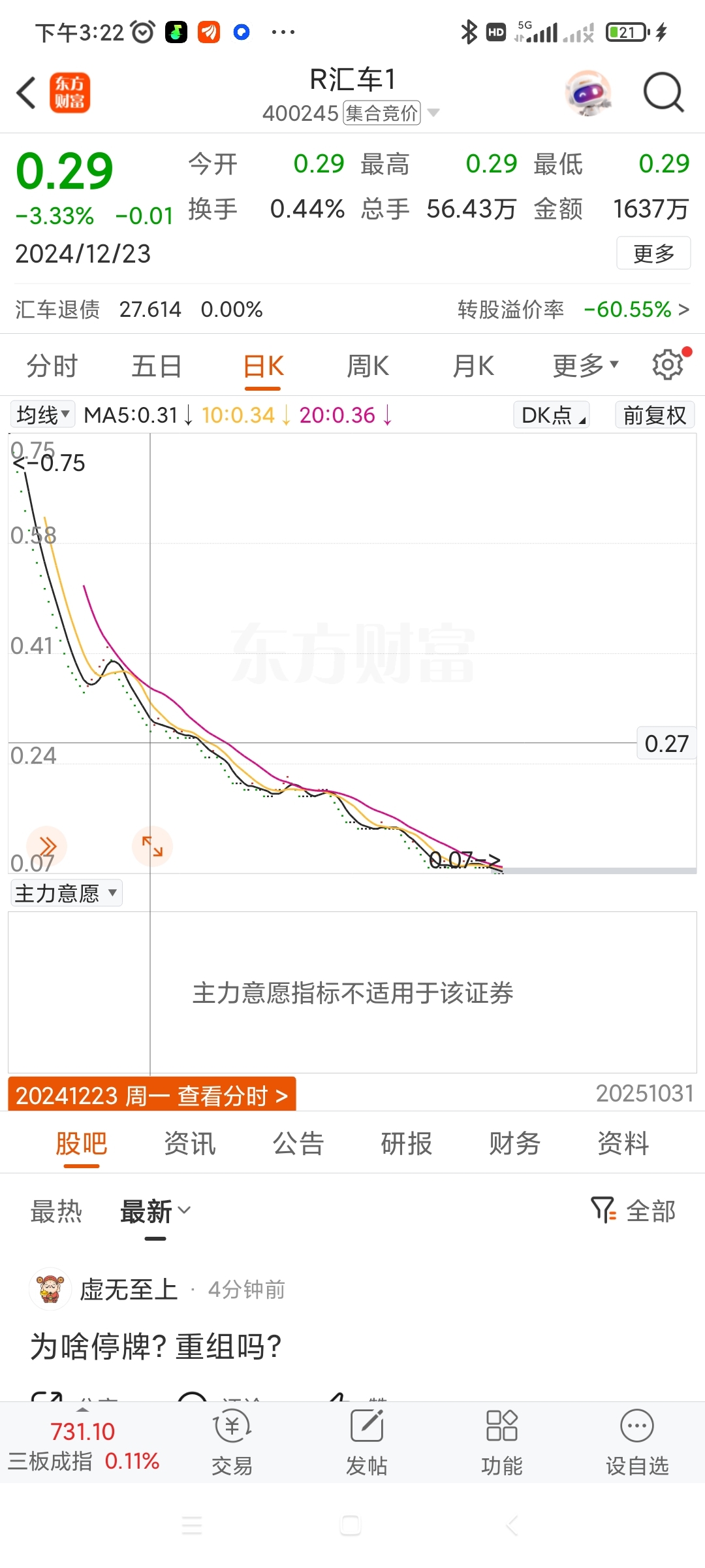 温馨提示: 1.根据《证券法》规定,禁止编造、传播虚假信息或者误导性信息,扰乱证券市场;2.用户在本社区发表的所有资料、言论等仅代表个人观点,与本网站立场无关,不对您构成任何投资建议。用户应基于自己的独立判断,自行决定证券投资并承担相应风险。《东方财富社区管理规定》