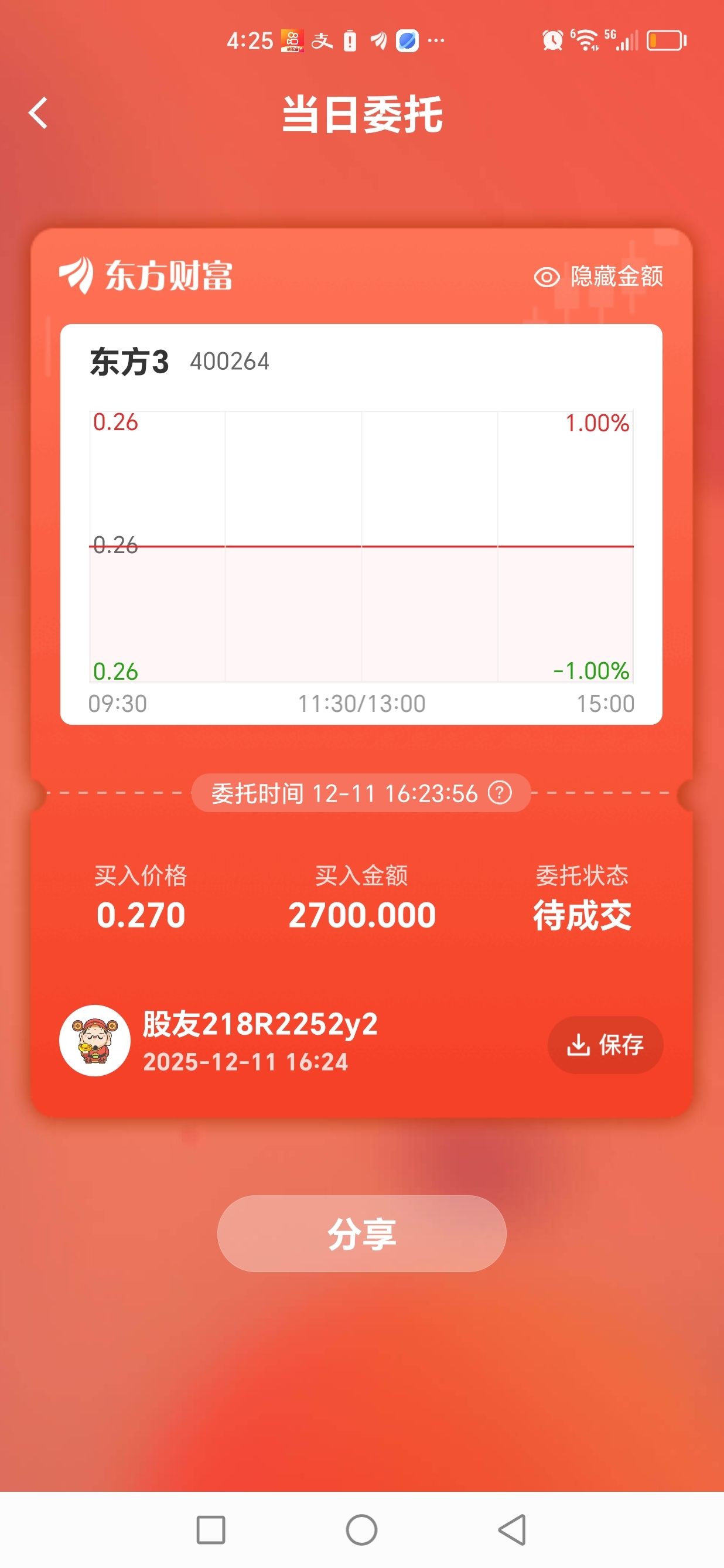 $东方3(SZ400264)$ 管他跌不跌,今天提前挂单了