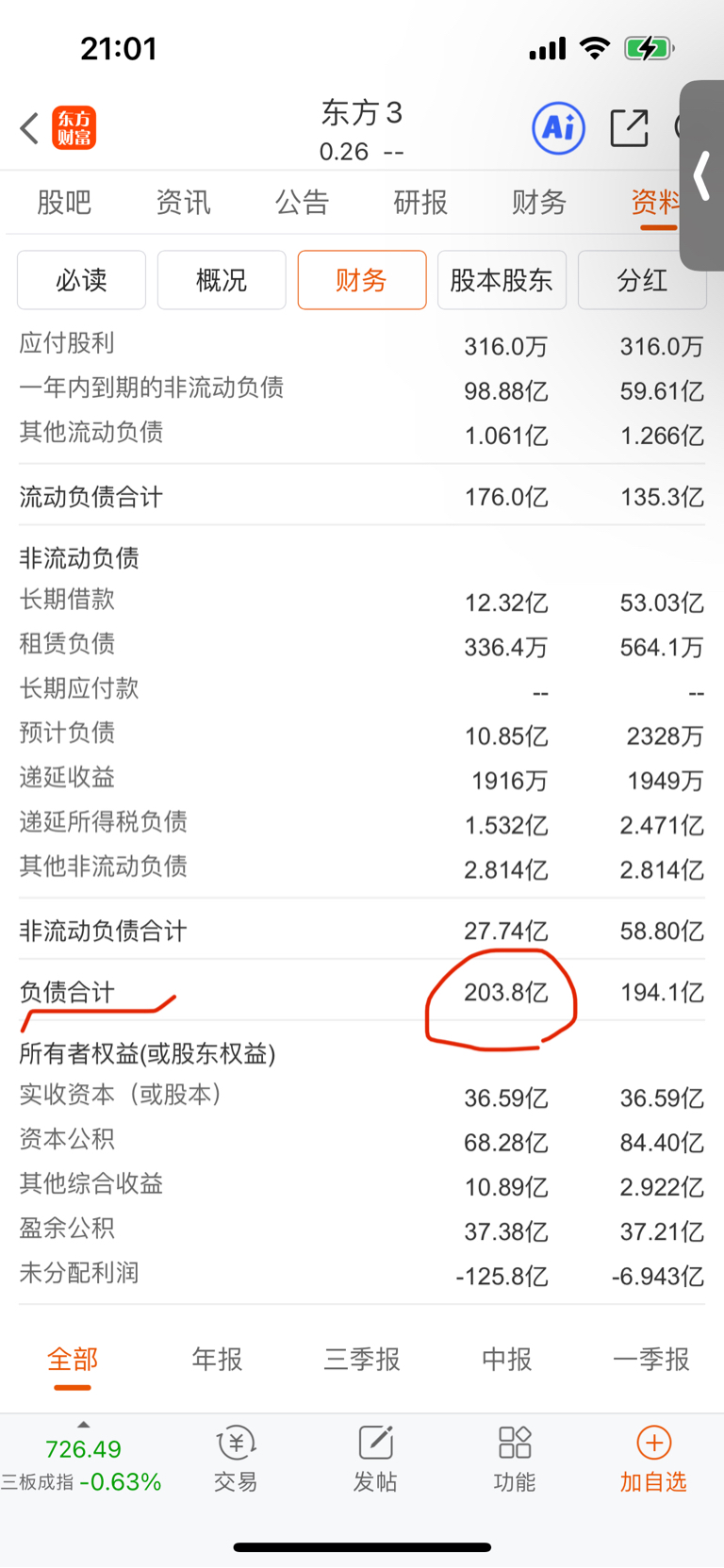 $东方3(SZ400264)$ 欠钱200多亿,你们是一点都不提。还忽悠别人买入,跌到0.03再说。老三板市值1亿很高了,康乐市值现在还有9.5亿呢,跌90%才合理