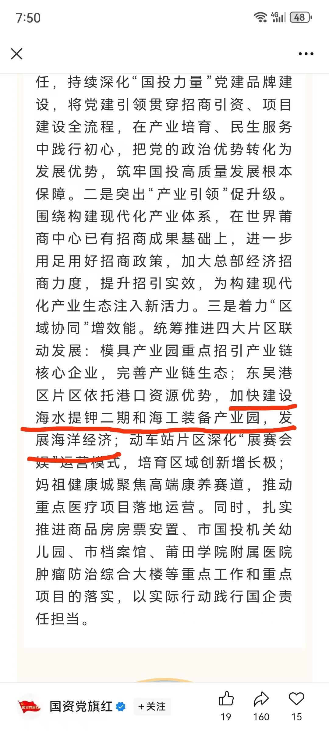 说你们什么好!海水提钾第二期都已经在加快建设当中了,一期基本完工了,你们还在提心