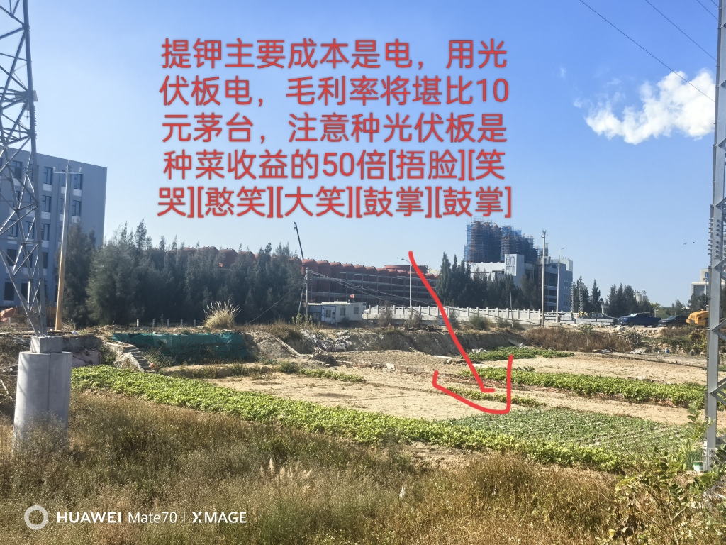 本帝师乔治一算,海水提钾等于把2毛光伏电储存进钾,并且娶用的时候变成2元卖暴利,