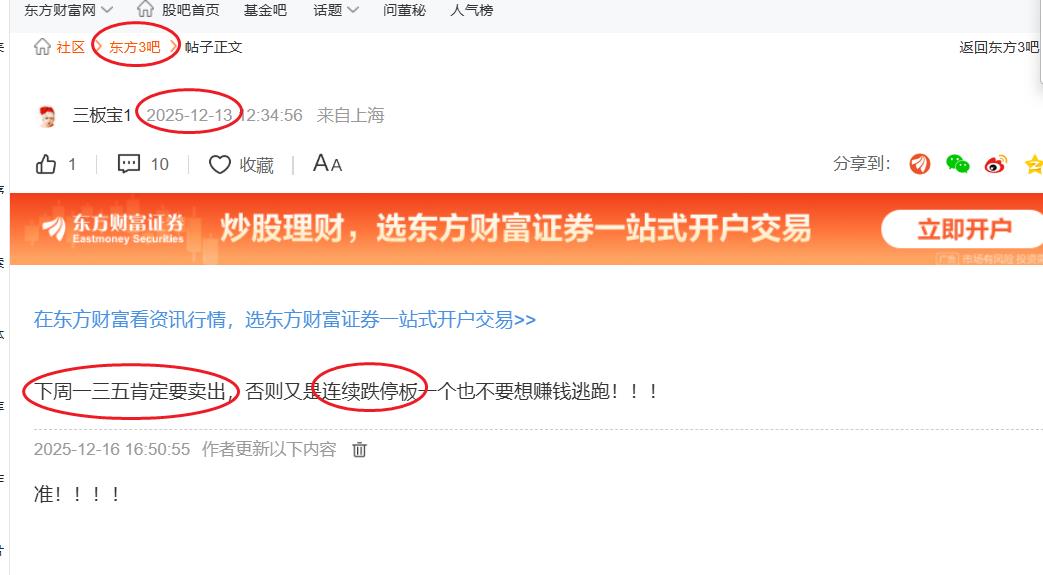 一周前对东方预测准!准!准!!!3万多粉丝不是空中掉下来的。星期五收盘后还在吹多