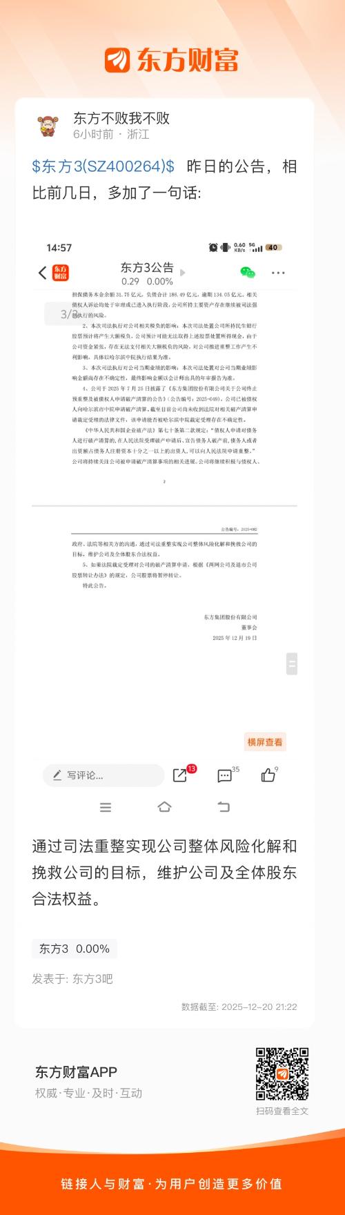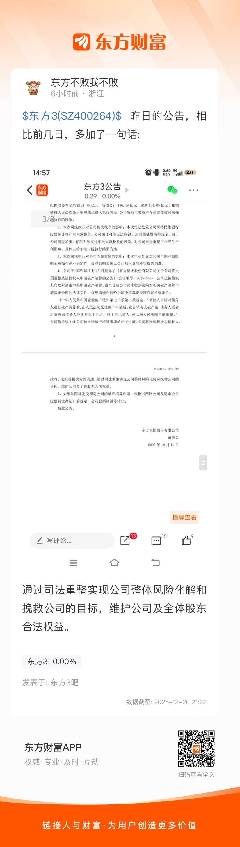 温馨提示: 1.根据《证券法》规定,禁止编造、传播虚假信息或者误导性信息,扰乱证券市场;2.用户在本社区发表的所有资料、言论等仅代表个人观点,与本网站立场无关,不对您构成任何投资建议。用户应基于自己的独立判断,自行决定证券投资并承担相应风险。《东方财富社区管理规定》