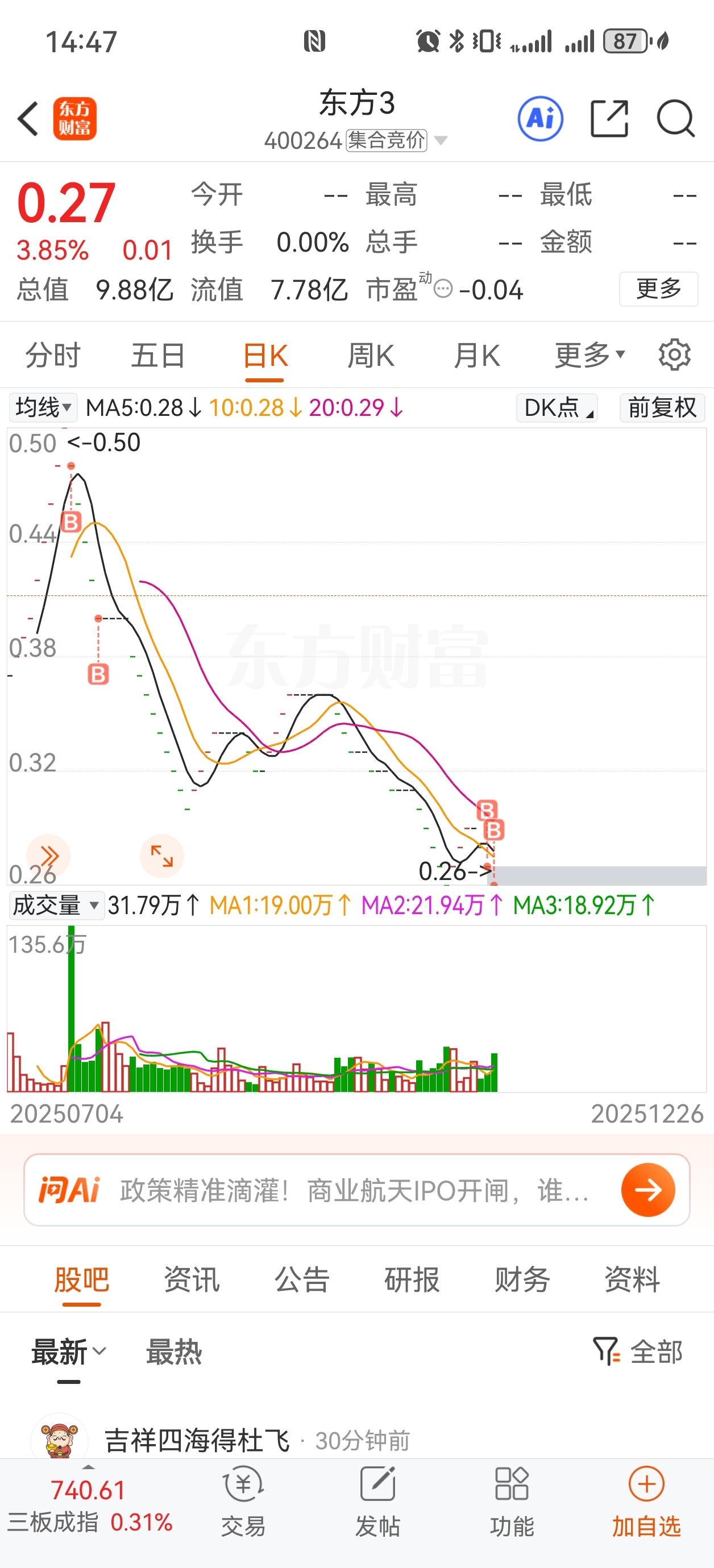 $东方3(SZ400264)$ 一路跌一路买