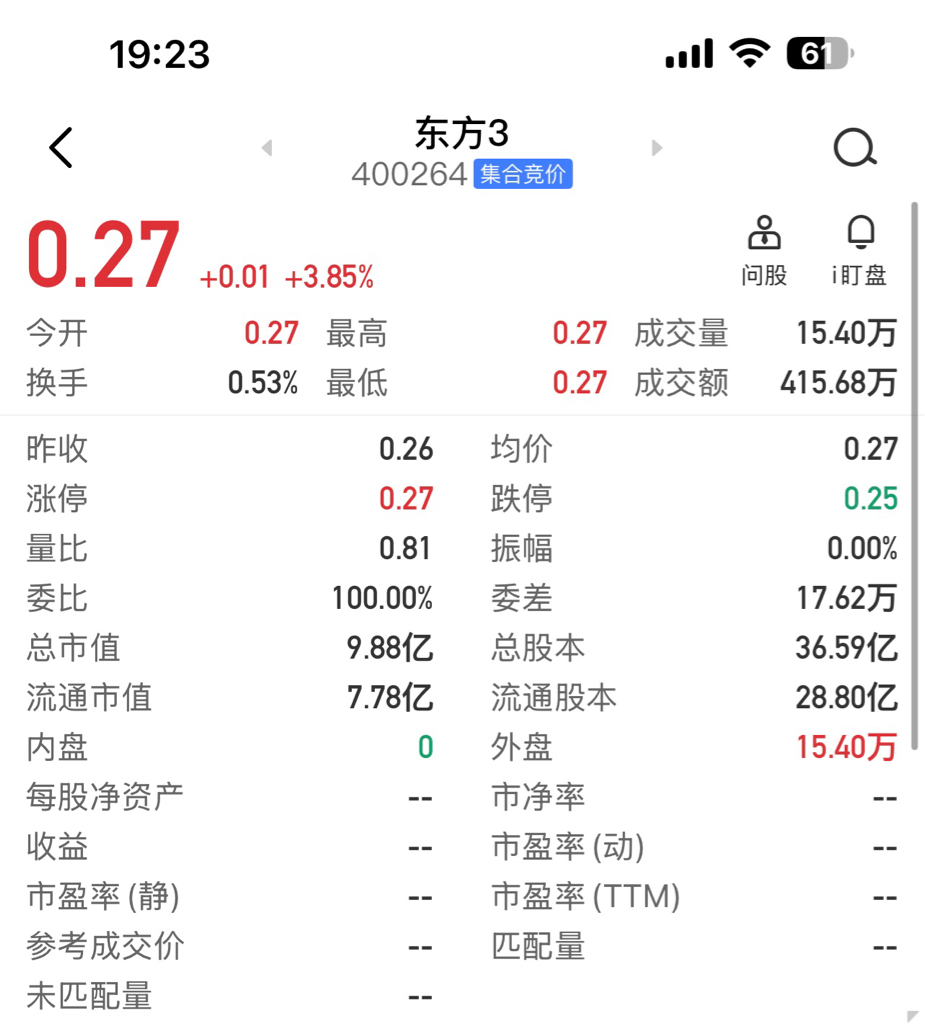 $东方3(SZ400264)$ 20251229收盘后统计的东方3历史数据(含当天)。希望对朋友们分析有帮助。津信科5和东方3是我唯一持有的两支老三板股票,不买也不卖,长期持有。带着津信科5和东方3一直到2030!祝股友们股市长红!