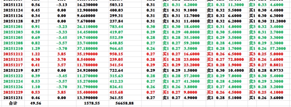 $东方3(SZ400264)$ 20251231收盘后统计的东方3历史数据(含当天)。希望对朋友们分析有帮助。津信科5和东方3是我唯一持有的两支老三板股票,不买也不卖,长期持有。带着津信科5和东方3一直到2030!祝股友们新年快乐,手中股票长红赚大钱!