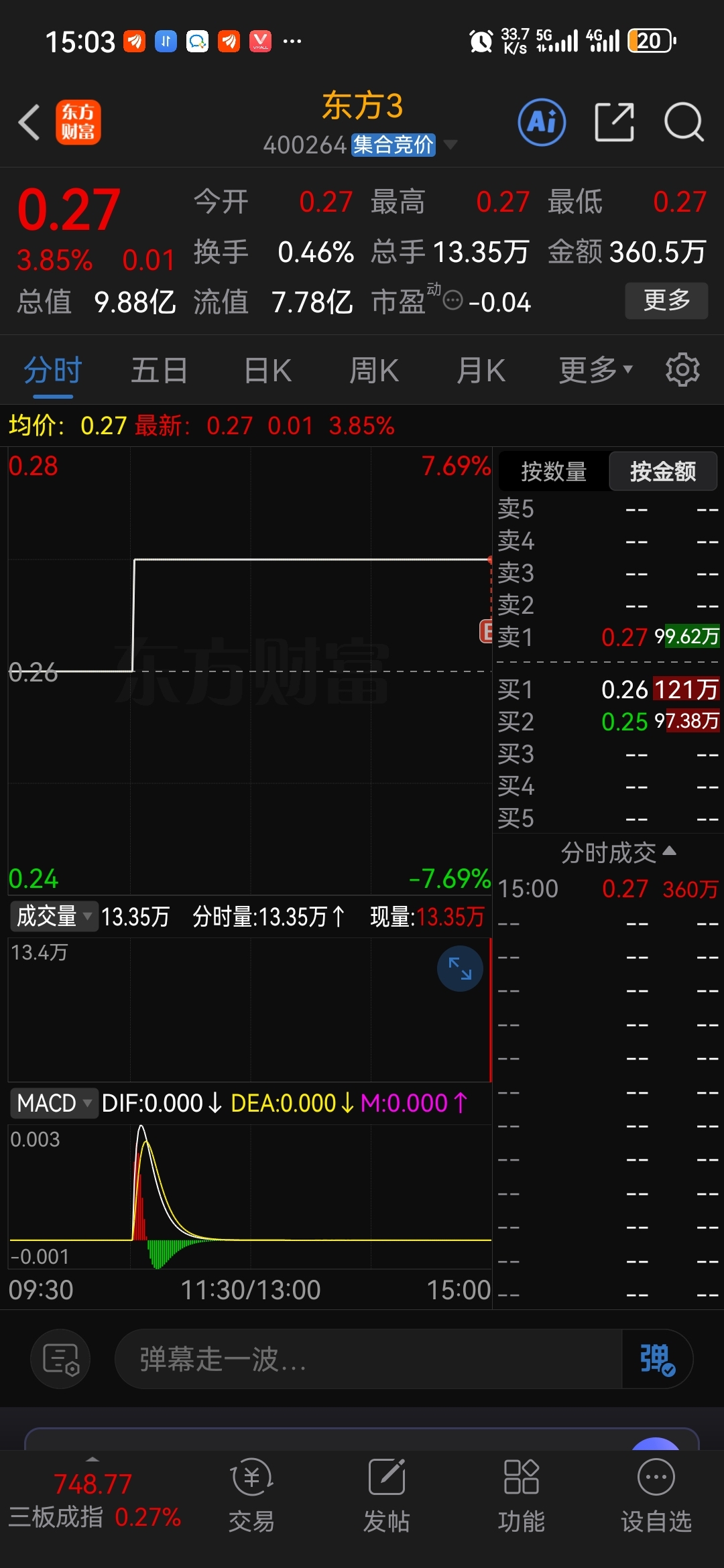 $东方3(SZ400264)$ 尾盘竞价都买上了曹
