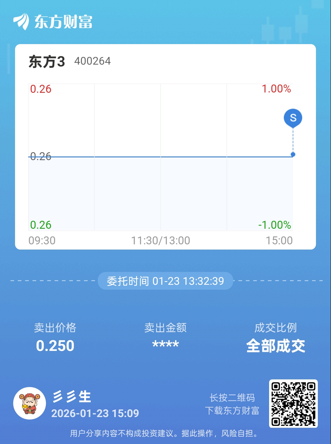 温馨提示: 1.根据《证券法》规定,禁止编造、传播虚假信息或者误导性信息,扰乱证券市场;2.用户在本社区发表的所有资料、言论等仅代表个人观点,与本网站立场无关,不对您构成任何投资建议。用户应基于自己的独立判断,自行决定证券投资并承担相应风险。《东方财富社区管理规定》