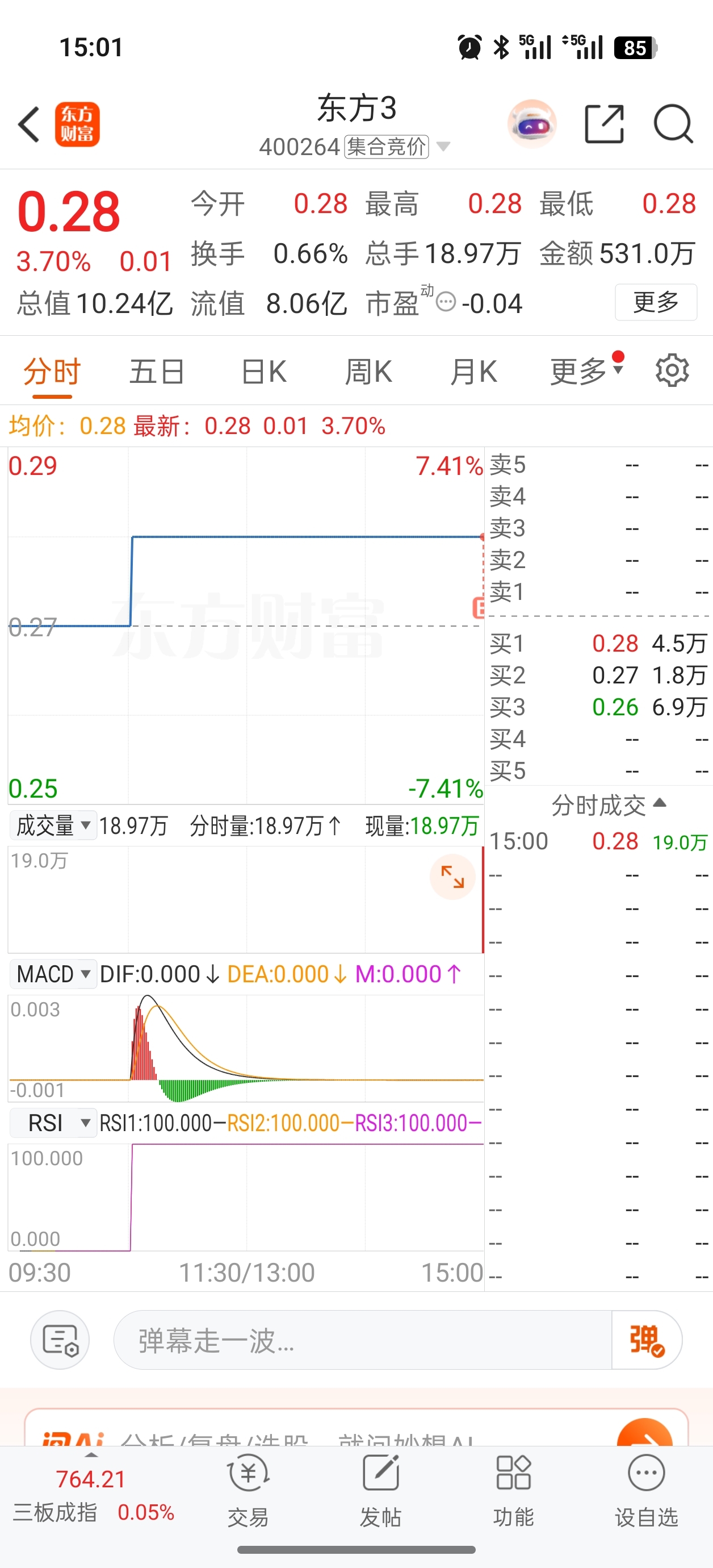 $东方3(SZ400264)$ 昨晚挂的买到了