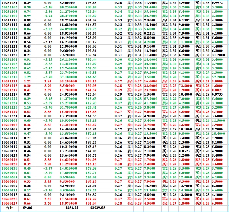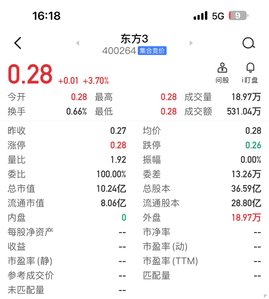 $东方3(SZ400264)$ 我的津信科5今天回本了,东方3走势也不错,希望两支票先一直连板到劳动节,再创新高度。东方3的第93个交易日,也是马年的第一个交易日。20260227收盘后统计的东方3历史数据(含当天)。希望数据对朋友们分析有帮助。津信科5和东方3是我唯一持有的两支老三板股票,不买也不卖,长期持有。带着津信科5和东方3一直到2030!祝股友们手中股票长红赚大钱!