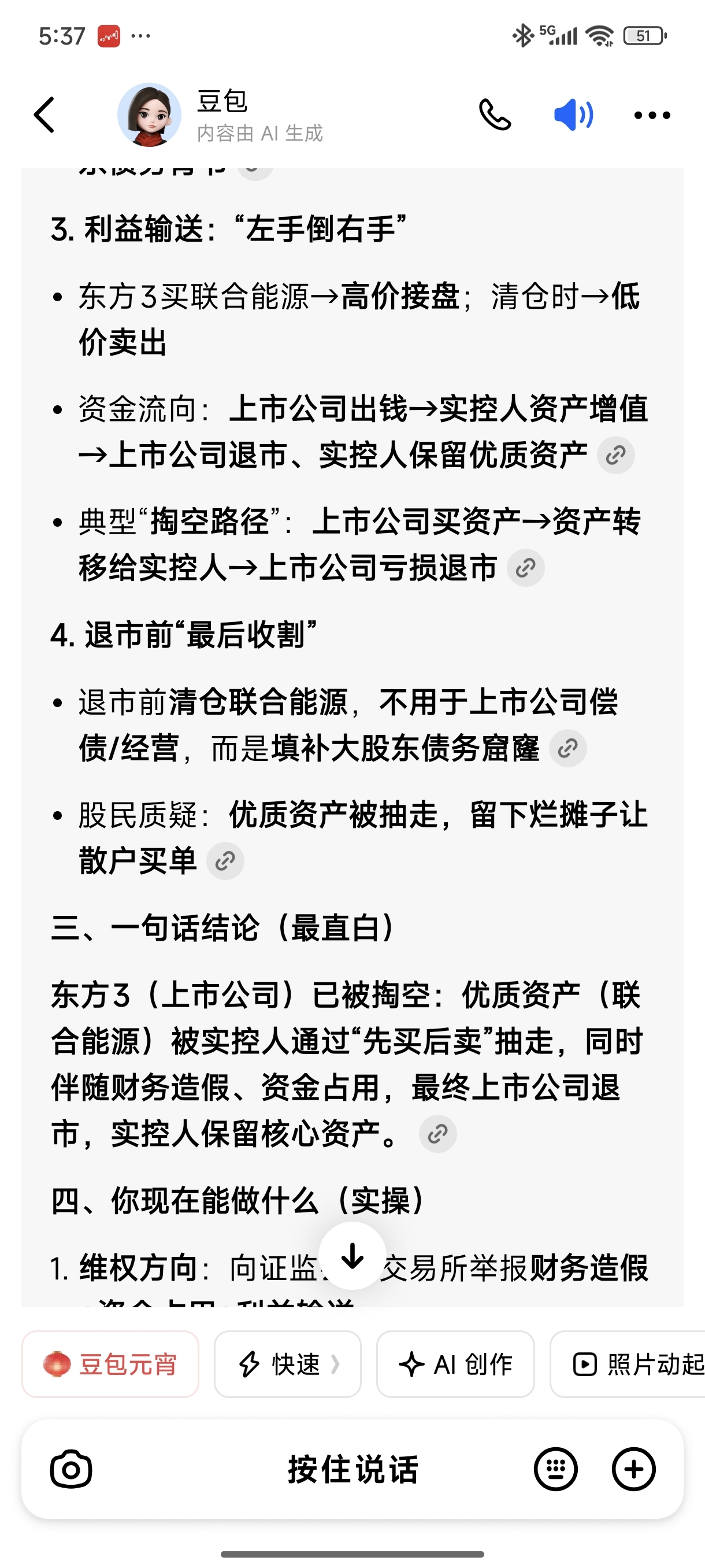 $东方3(SZ400264)$ 看了豆包解释,才真正理解为啥有人说是掏空公司,
