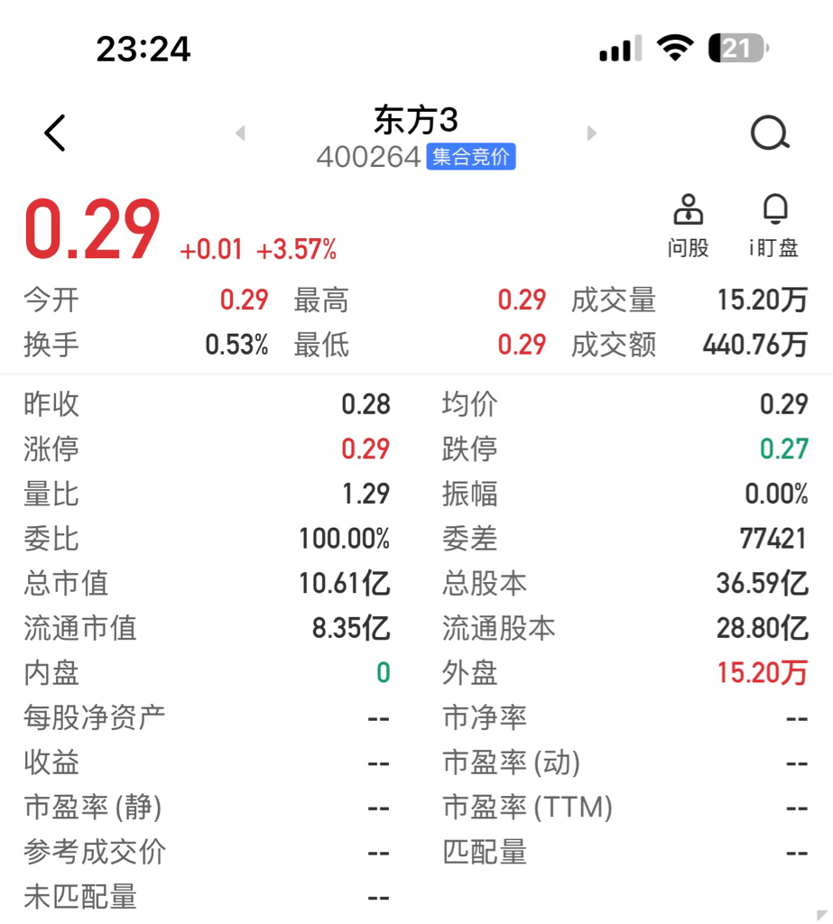 $东方3(SZ400264)$ 我的津信科5今天回本了,东方3也走起吧,希望两支票先一直连板到劳动节,再创新高度。东方3的第94个交易日,也是马年的第一个交易日。20260302收盘后统计的东方3历史数据(含当天)。希望数据对朋友们分析有帮助。津信科5和东方3是我唯一持有的两支老三板股票,不买也不卖,长期持有。带着津信科5和东方3一直到2030!祝股友们手中股票长红赚大钱!