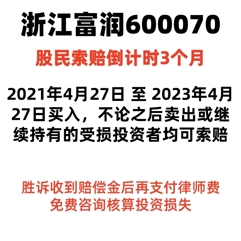 $富润3(SZ400265)$ 2021年04月27日至2023年04月27日(含)有买入且在2023年04月27日后卖出或继续持有的受损投资者可索赔
