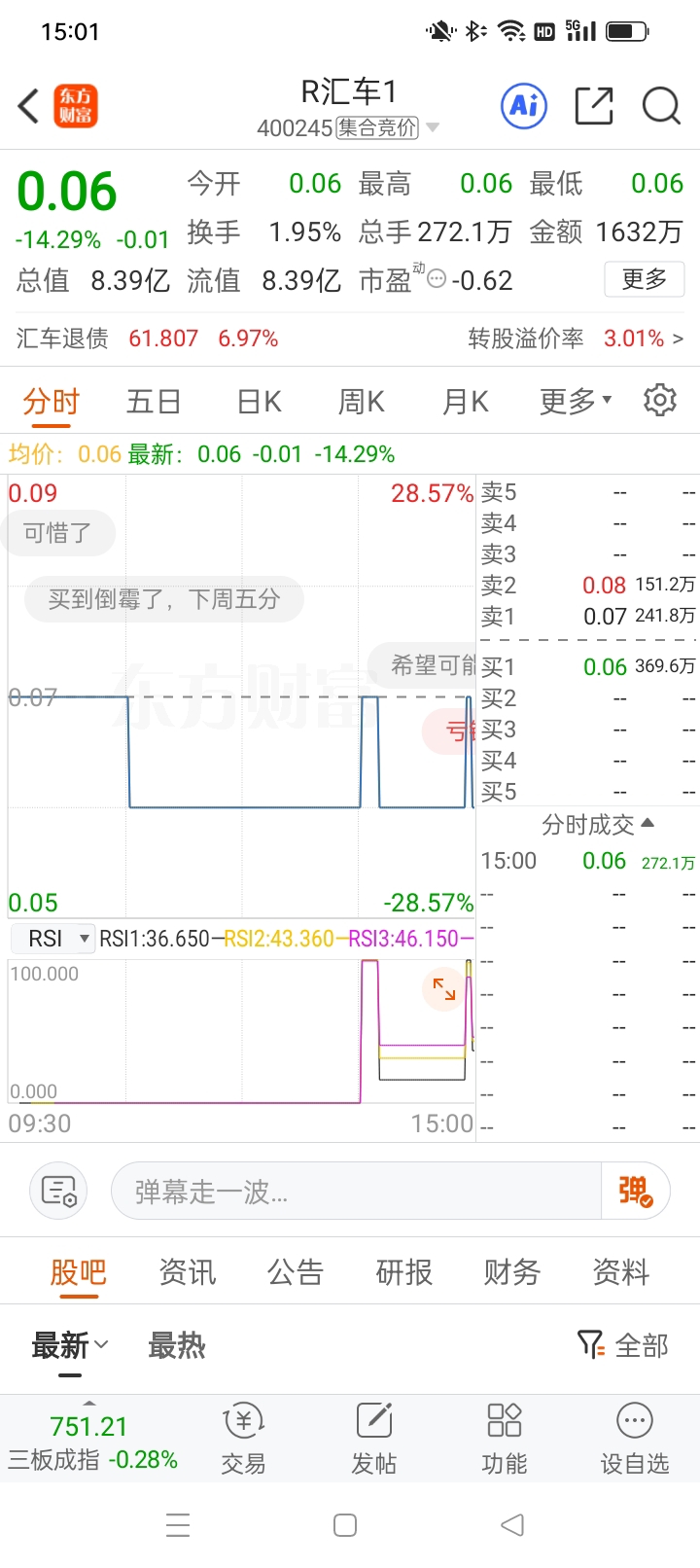$R普利1(SZ400266)$ 恭喜!恭喜!汇车0.06元了!普天同庆!