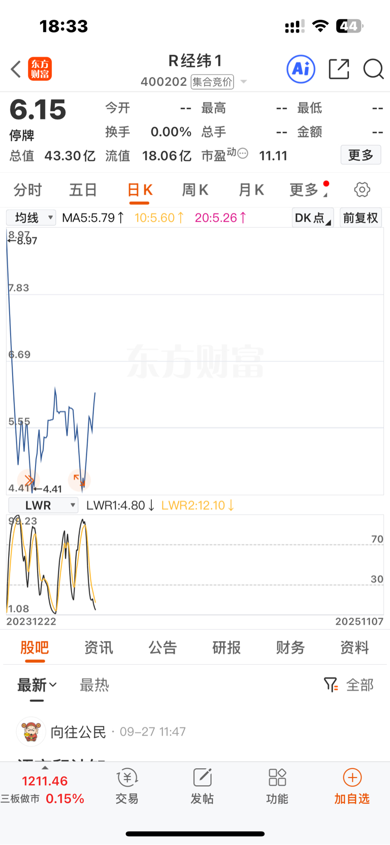 $R鑫升1(SZ400267)$ 基本上可以参考它,后期在要约价格的百分之50到70之间横盘,经纬1要约价格9.24现在经纬1外面流动盘在15万左右,玉龙黄金外面流动盘在7.7万手左右