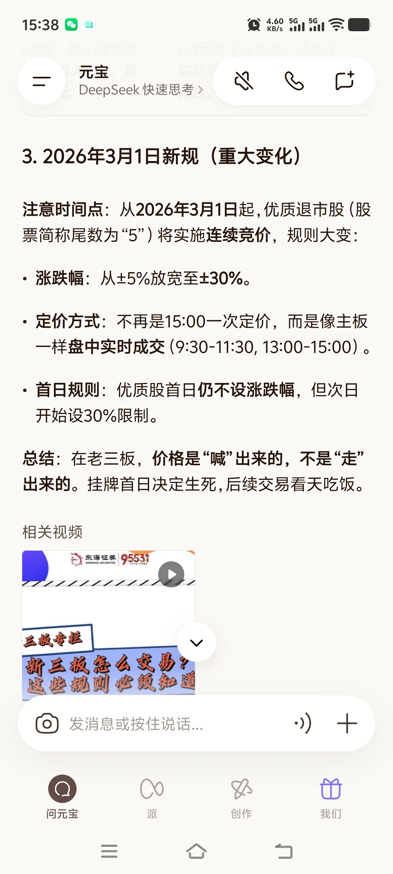 $龙津5(SZ400270)$ $大药5(SZ400260)$ $津信科5(SZ400259)$ $元成5(SZ400284)$ 2026年3月1号起老三板涨跌幅调整到30%,真的假的呢?我用豆包搜到的!